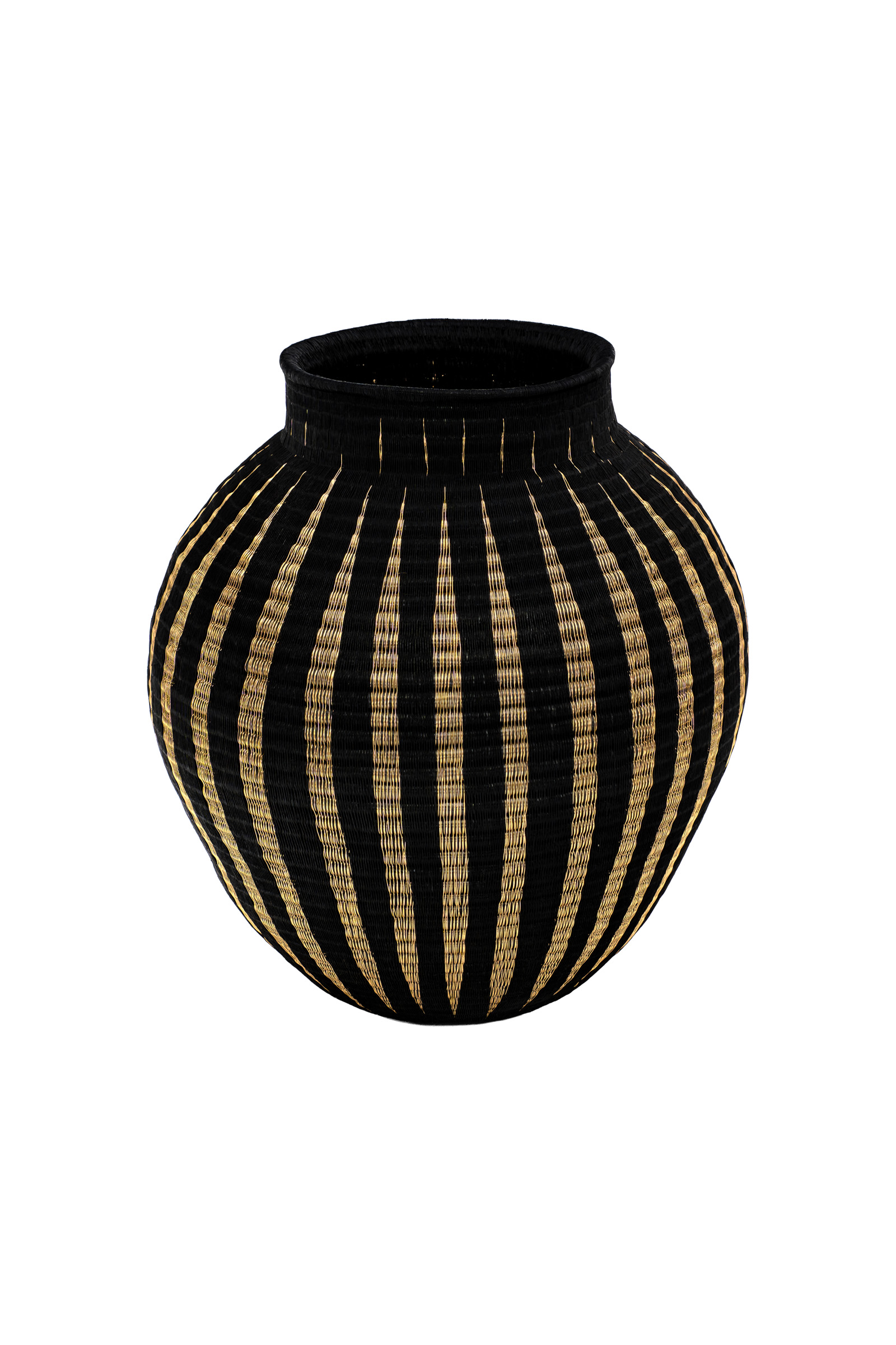 Canasto diseño líneas verticales hecho por comunidades indígenas Woounan del Pacífico Colombiano, utilizando una fibra natural de palma nativa de Werregue, los cuales con la técnica de cestería por enrollamiento y costura elaboran diversos tipos de productos, siendo estos canastos de las primeras creaciones de la cultura Woounan utilizados para el transporte de agua y alimentos. Actualmente son piezas decorativas de ensueño que dan un toque de perfección al lugar donde se coloque.
