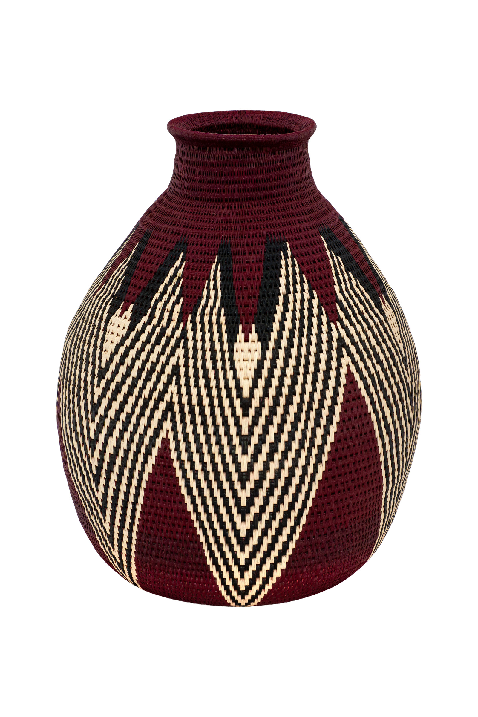 Canasto werregue de color rojo, hecho por comunidades indígenas Woounan del Pacífico Colombiano, utilizando una fibra natural de palma nativa de Werregue, los cuales con la técnica de cestería por enrollamiento y costura elaboran diversos tipos de productos, además, muchos de los mismos vienen con un diseño moderno colocándoles todo tipo de figuras llamativas, las que hacen de este artículo un sueño sumado de exclusividad; siendo estos canastos de las primeras creaciones de la cultura Woounan utilizados para el transporte de agua y alimentos.