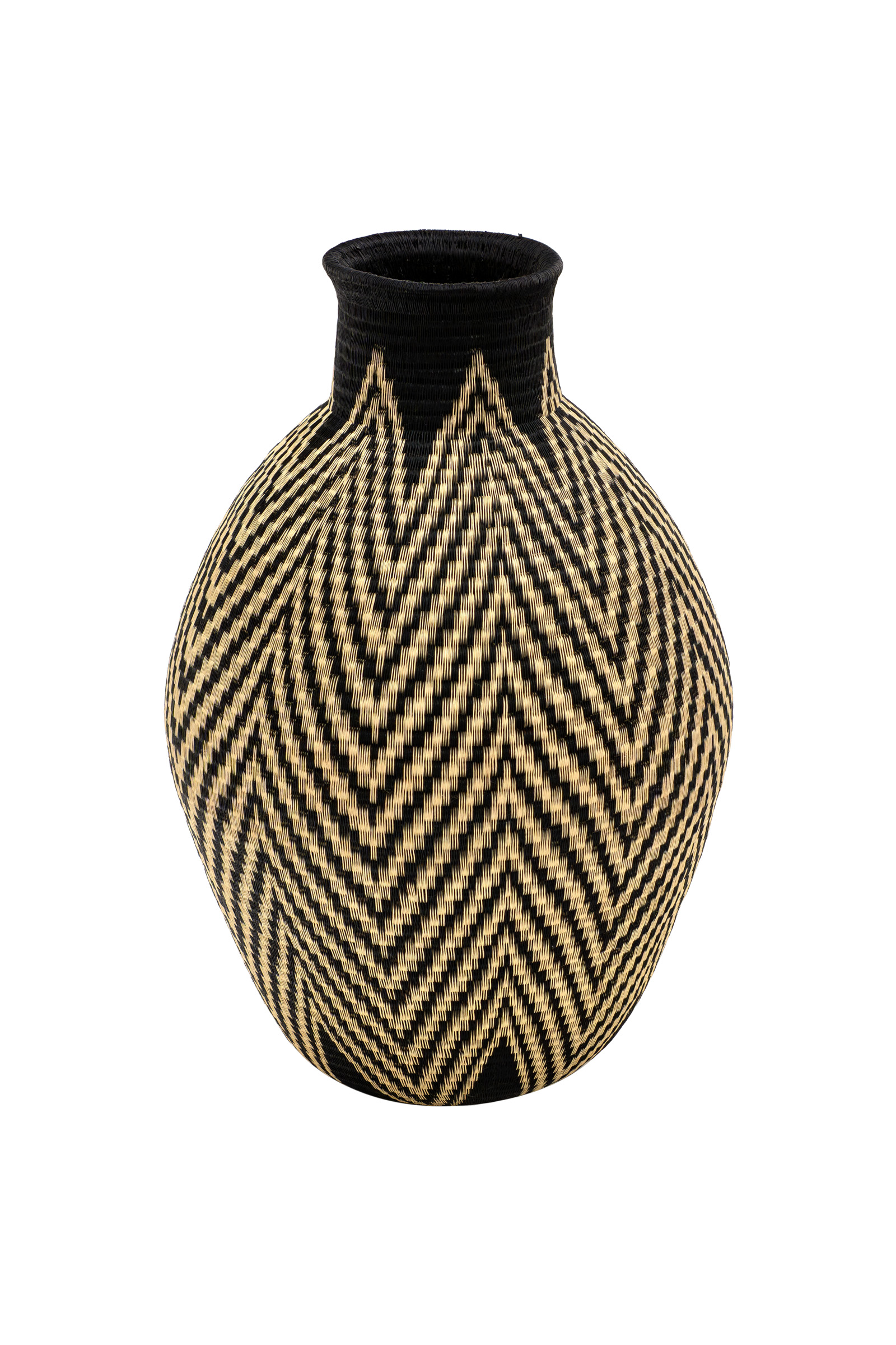 Canasto hecho por comunidades indígenas Woounan del Pacífico Colombiano con figura de triángulo, utilizando una fibra natural de palma nativa de Werregue, los cuales con la técnica de cestería por enrollamiento y costura elaboran diversos tipos de productos, además, muchos de los mismos vienen con un diseño moderno colocándoles todo tipo de figuras llamativas, las que hacen de este artículo un sueño sumado de exclusividad; siendo estos canastos de las primeras creaciones de la cultura Woounan utilizados para el transporte de agua y alimentos. Actualmente son piezas decorativas de ensueño que dan un toque de perfección al lugar.